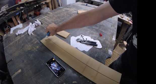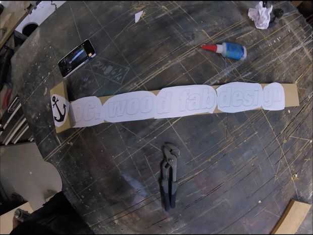 Ejecutar una fina capa de pegamento por el centro de cada pieza de MDF y fije las dos piezas juntas. (déjalo seco. después se recortan las letras tendrán dos de todo).