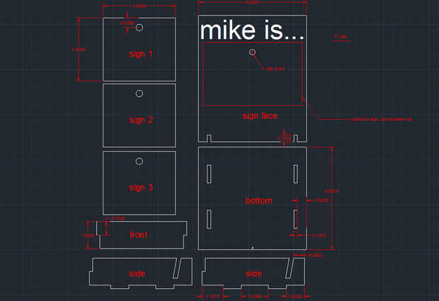 He incluido el archivo CAD que hice, eres libre de descargarlo y modificarlo para satisfacer sus necesidades. Hice una capa de «referencia» en el CAD de dibujo que tiene notas y dimensiones, usted querrá desactivar esta capa antes de enviar sus archivos al láser.