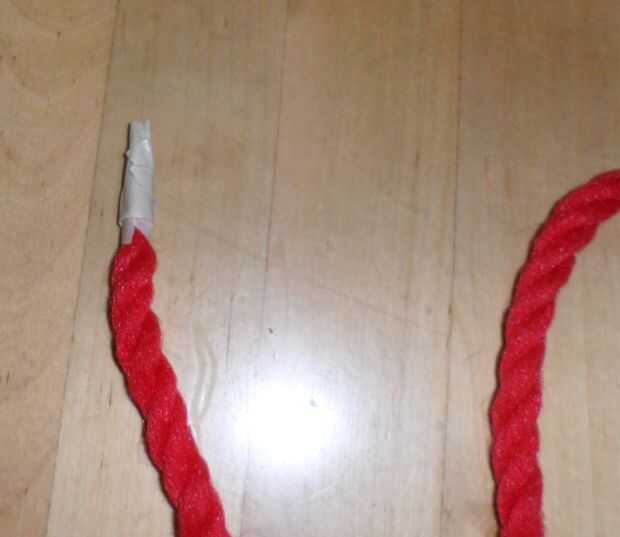 Coloque un pedazo de cinta adhesiva alrededor de la médula de macrame para hacer una "aguja".