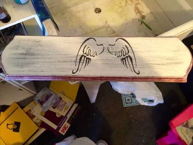 Siga las instrucciones en el adhesivo de la plantilla y asegure la plantilla a la madera. Asegúrese de que la plantilla se centra antes de pintar. Consejo que no siga en este proyecto :/ Además, invertir en algunos pinceles de estarcido barato y utilice muy poca pintura en el cepillo al aplicar. Limpie los cepillos en un trapo después de cargarlos con pintura. Si no, la pintura filtre a través de los bordes de la plantilla y manchar su proyecto. Retirar el stencil inmediatamente después de la pintura y, si almacenar comprado, limpiarlos con acetona para quitar el pegamento de cualquier plantilla. Una vez que las plantillas se han secado, aplique otra capa de blanco.