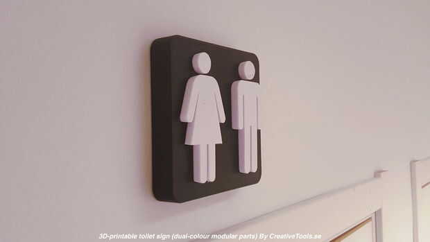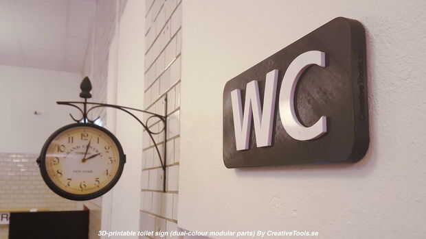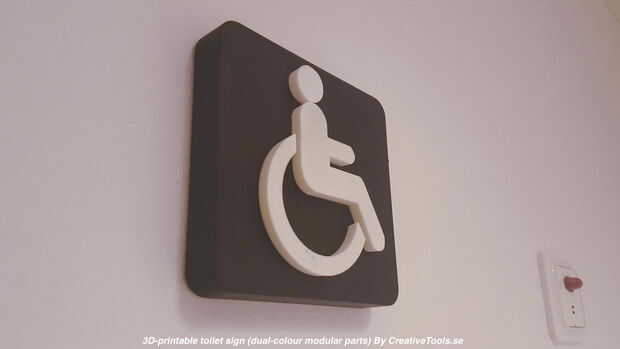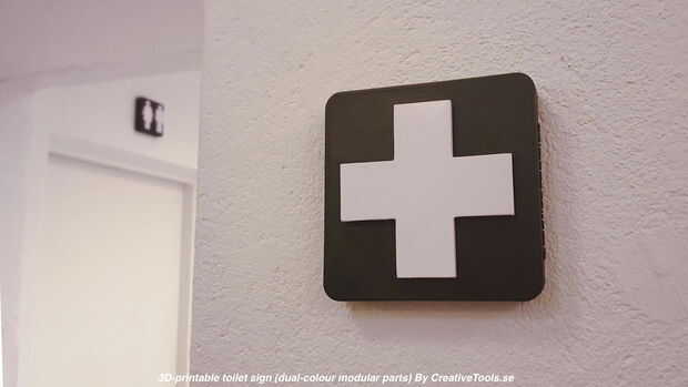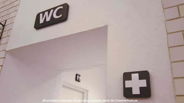 Estos signos de aseo están diseñados para ser impresos en 3D de dos colores. Cada uno está hecho de varios componentes que se ajustan con una conexión cónica (ninguÌ n pegamento requerido).