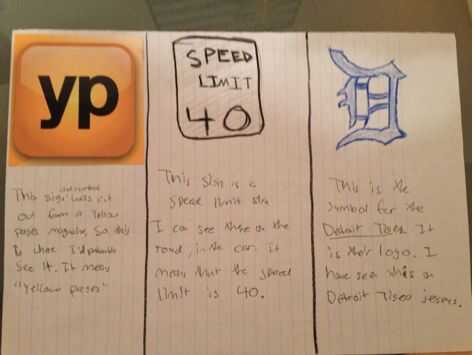 Al enseñar esta lección, el profesor proporcionará los estudiantes con ejemplos de diferentes signos que pueden encontrar en su vida cotidiana. Algunos ejemplos son signos comunes de calle, luces de neón y carteles. El profesor proporcionará a estos estudiantes con las ilustraciones de estos ejemplos, deja que pensar y después llevar a cabo una discusión completa sobre la ilustración. Durante esta discusión, el profesor debe pedir a sus estudiantes describir la muestra con todo detalle (como se ve, qué colores, cualquier palabras/imágenes en él), predecir lo que puede decir y predecir dónde puede encontrar fuera de la escuela. La lección en sí mismo les presentaremos la asignación real, pues la actividad debe hacerse en su propio tiempo. La lección le llevará no más de 10-15 minutos, dependiendo de cómo muchos ejemplos el profesor proporciona a los estudiantes, pero el tiempo que llevará la actividad variará estudiante, como algunos estudiantes pueden poner más esfuerzo en lo que otros.