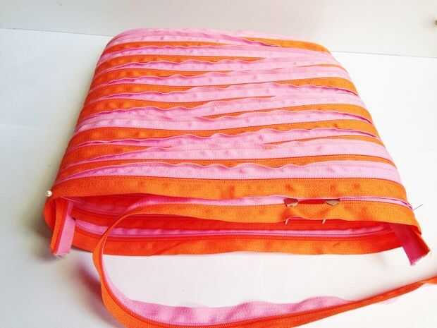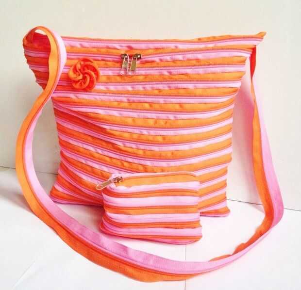Mida y corte la tira de cremallera según cuánto quiere la correa de hombro para ser. Perno en el interior de ambos lados de la bolsa. La cremallera debe colocarse del lado derecho se enfrenta a las paredes de la bolsa (has tomado mal la imagen y no cuenta hasta que subi. Ahora coser como hiciste con el monedero de la moneda. Cortar exceso cremallera.