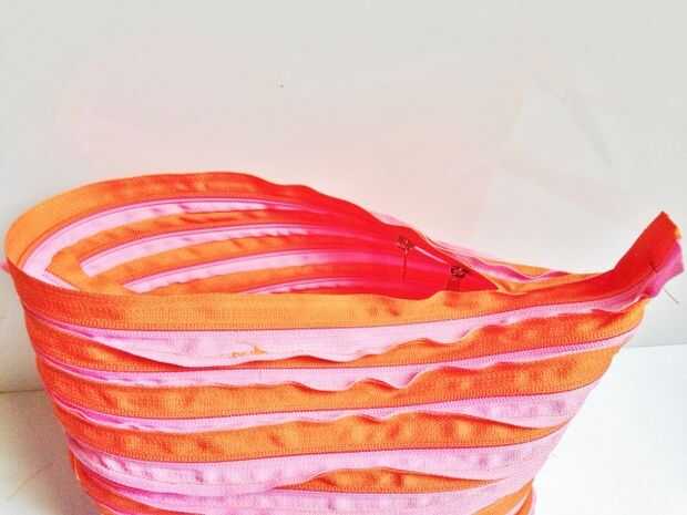 Hacer el bolso según el monedero pero antes unas cuantas rondas de cremallera hasta el final de la bolsa.