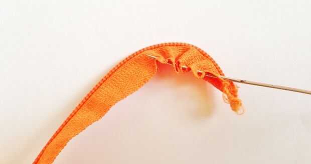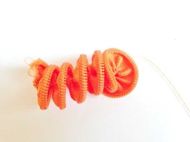 Tome un lado de la cremallera. Coser una puntada corriente y tire hasta llegar sobre 6 círculos. Virar en y empezar a organizar los pétalos para formar una flor y lentamente comienzan a virar otra vez para que la forma se mantiene. Ahora hay que arreglarlo a tu bolsa para que sea agradable y lindo!