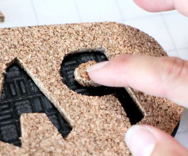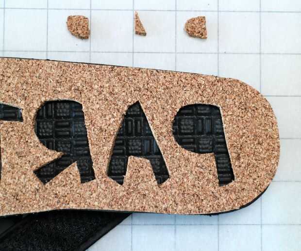 Lugar que su nuevo 'sello' flip fracasos fondos abajo en un fresco pedazo de papel. A continuación, pesar con algo pesado, pero flexible, para que toda la superficie del corcho está en contacto con las partes inferiores de las ojotas. (Yo usé sacos de arena).
