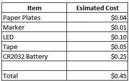 Mi instructable utiliza la misma idea, pero escala hasta el tamaño de la placa de papel. El costo neto de cada decoración es menos de 50 centavos, pero realmente lo puedes hacer por menos de 25 centavos si tienes tiempo para encargar piezas de China en lugar de otros vendedores en eBay.