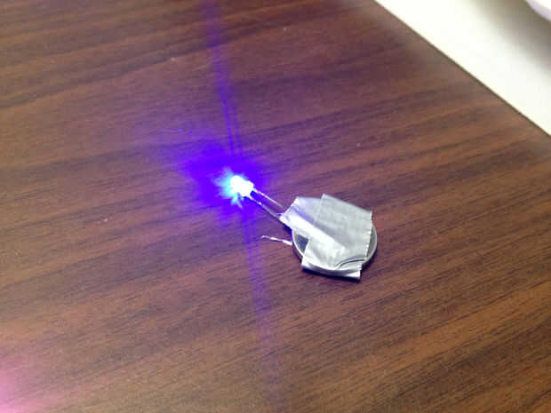 Todo lo que necesita hacer para el LED es cinta adhesiva a la batería CR2032. Si el LED no enciende, solo tapa la batería alrededor como el LED sólo funciona con el voltaje va en una dirección. Las pilas de botón no ponen suficientes amperios para dañar el LED, para que una resistencia no es necesario tampoco. Si utiliza un tipo diferente de pila de botón, asegúrese de que usted tiene por lo menos 3 voltios o el LED no enciende o puede ser muy débil. Con el LED, sólo gota en i el ojo de las placas.
