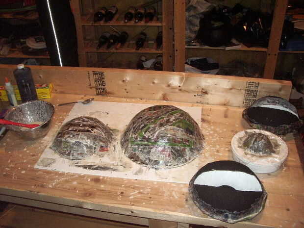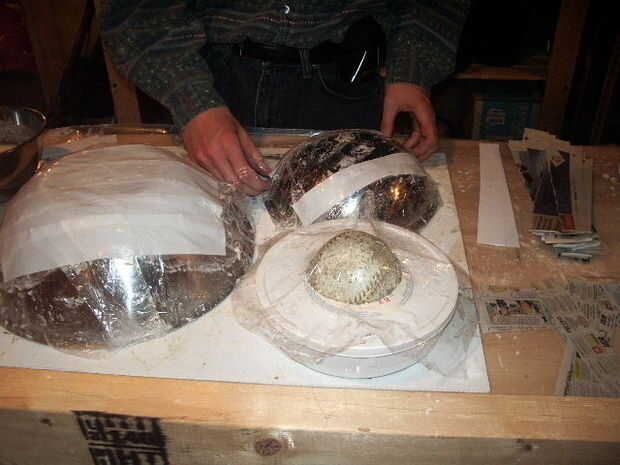 En las imágenes que también se puede ver que estoy pegando juntos algunas hechas previamente partes de globo ocular con tiras de papel alrededor del borde. Si este es su primer globo ocular, que viene después del curso. Pinté estos frentes de globo ocular antes de pegarlas les juntos, pero es mejor pintar los frentes de globo ocular después de los globos oculares son completados e instalados en la cartulina.