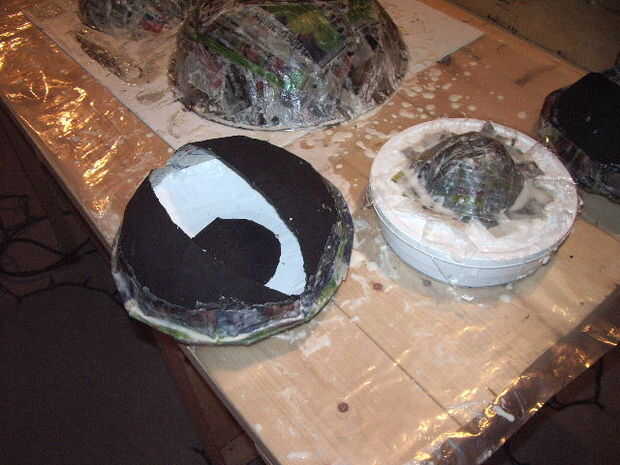 En la foto el frente del globo ocular fue pintado de negro antes de pegarlas, pero es mejor pintar después. Tuve que volver a pintar donde pegué juntos de todos modos.