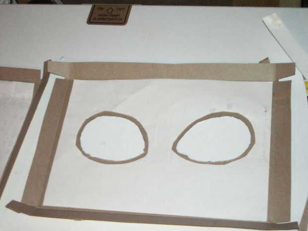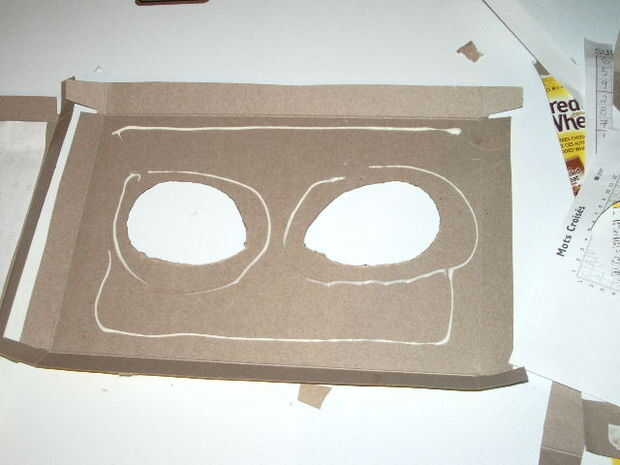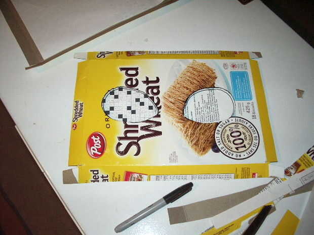 Coloca el papel debajo de la parte delantera de la caja de cereal y trazar la forma del ojo en el papel. Si ya impreso a un lado, coloque la cara impresa hacia arriba como se muestra.
