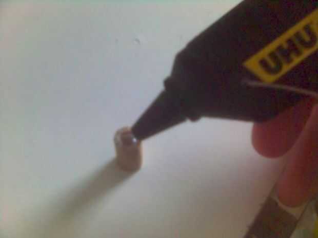 Tomar las dos más pequeñas piezas y rellenar con pegamento, para que los centros son totalmente herméticos.