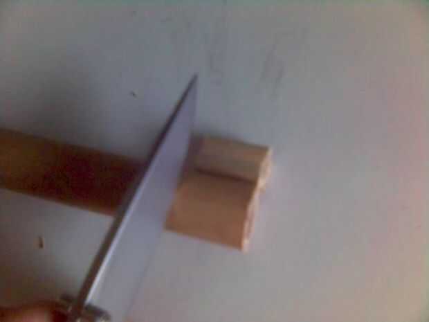 Lugar la pieza grande y pequeña pieza plana con bordes paralelos, alineando sus bordes superiores y marcan en lo grandes cómo lejos abajo viene el pequeño pedazo. Donde se hizo la marca, vio hacia abajo en el bambú hasta que sólo hayan penetrado el centro.
