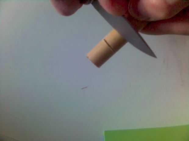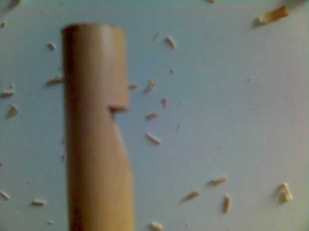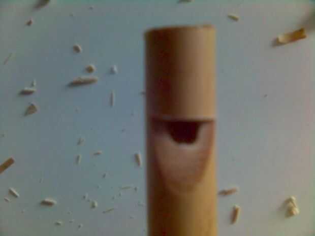 a continuación, tomar un cuchillo y corte hacia y en el bambú, donde hiciste la Sierra de corte, para que acaben con una corte de muesca. Tienes que hacer esta muesca cerca de 15-20mm de largo, que corte el aire muy bien cuando el silbato en.