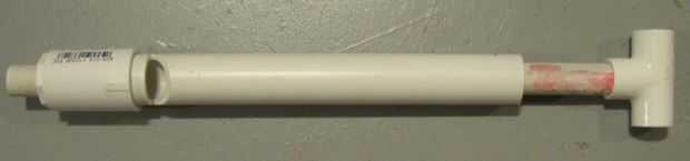 Hago el émbolo de un casquillo de extremo de PVC de 1/2". La tapa no encaja abajo el tubo de PVC de 1" fuera de la plataforma, así que la tapa tendrá que modificar. Usé un torno para bajar el diámetro de la tapa hasta que ajuste bien. Si no tienes un torno, podría utilizar una lijadora de banda pero sería menos preciso y también sería muy difícil mantener una forma redonda que sellaría bien en el tubo.