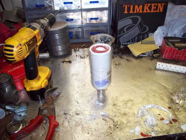 Inserte el tubo envuelto en la tubería de 2 pulgadas, tratar de centrar. Si está más cerca de un lado, luego Envuelva más paño alrededor de la parte baja, o tomar algo lejos de la parte superior.