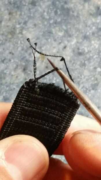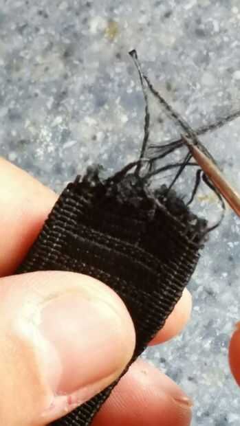 Esto es un poco complicado. La forma que se teje la cinta elástica necesita escoger el final para encontrar la cadena principal uno a tirar. Si empiezas en el lado equivocado, no desarmarse fácilmente y termina en un nudo. Estas son fotos de mi fracaso del 50/50 supongo que final para empezar a. Utilizar una selección dental real para dicho trabajo.