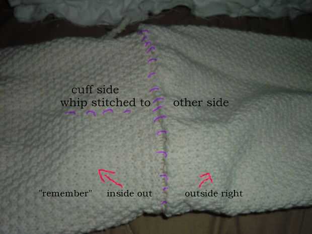Meter en la banda de adentro hacia afuera, luego estirar el brazalete para coincidir con el extremo cortado de la otra manga y whip coser juntas.