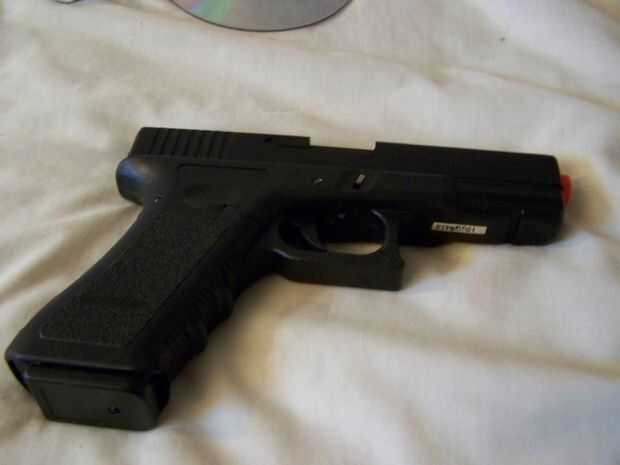 Paso 1: artículos Necesita1 pistola de airsoft2 rollos de papel higiénico o rollo de toalla de papel1 cintaPaso 2: Paso 1 Poner el rollo de papel higiénico en el extremo de la pistolaPaso 3: Paso 2 Rollos de papel higiénico de cinta juntosPaso 4: Pas