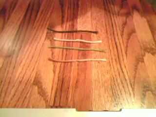 todo el mundo puede trenza bien las cosas? ¿Puede usted trenza de más de 3 cosas? Aquí está cómo trenza de 8 cabos de cuerda, cadena, hilo, tiras de cuero o el nombre.Paso 1: Iniciar con 4 y doble hacia abajo Saque cuatro hilos de cable, cadena, hilo