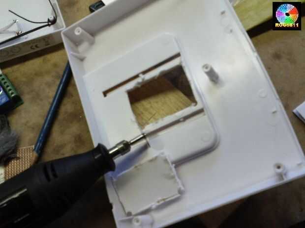 Fue inmediatamente obvio que si pude montar la batería debajo de la diapositiva que se utiliza para fijar a una repisa la radio no necesita desarmarse cuando la batería necesita reemplazarse. por lo tanto hacia fuera con el fiel Dremel con un disco de sierra montado.