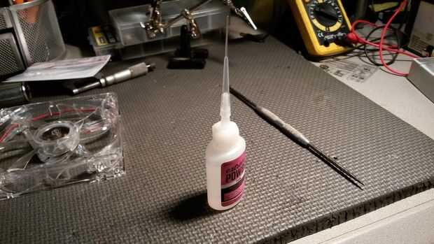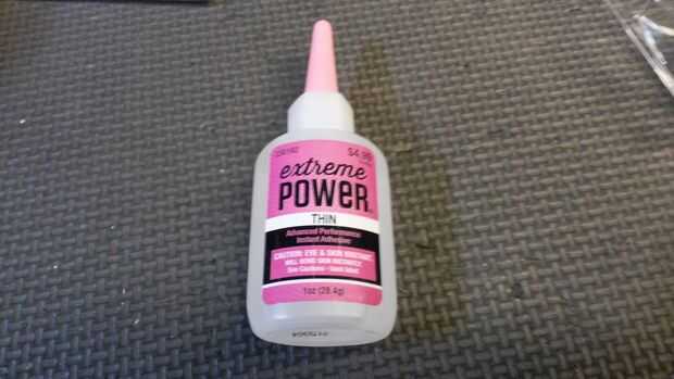 1. fino pegamento del cianocrilato. Fui con fino porque he encontrado la mezcla más gruesa difícil de trabajar en trabajos delicados.