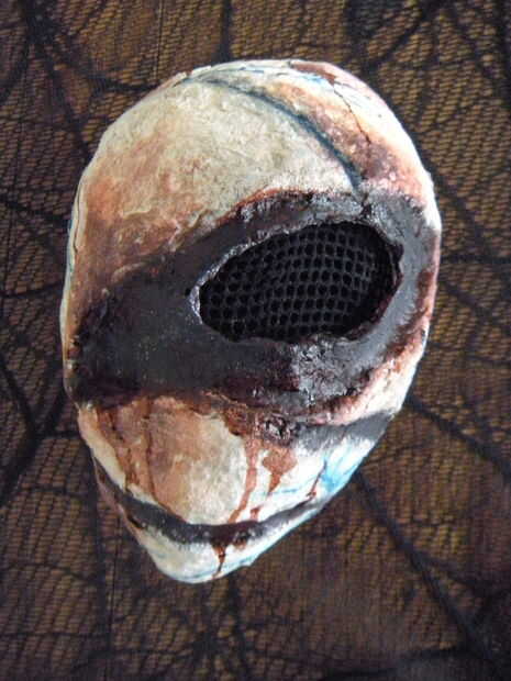 He utilizado negro pintura acrílica para llenar el ojo y otras hendiduras en el máscara y deja secar antes de ir sobre el ojo con algún morado, negro, rojo y azul hasta sombra de ojos para agrega riqueza. Para las zonas oxidadas, acabo de había hecho con una mezcla de rojo, naranja y amarillo dibujo tinta y secó en con una toalla de papel. También utiliza algunos pintura azul para las venas y ellos había mezclado un poco con alguna sombra de ojos azul. Volví con la misma mezcla de tinta y solo deje que se goteo las piezas de la máscara que pensé que sería buena. (Nota: Asegúrese de que ello fuera o tener una toalla de papel u otra pieza de desechos debajo de la máscara para que la tinta no mancha su área de trabajo. También use guantes; Yo no y terminó con tinta en los dedos).