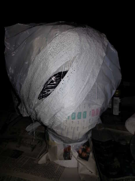 Sugiero mantener un poco extra en la parte para crear el sombrero - ésta era mi intención original, pero funcionó hacia fuera más rápidamente de lo que pensé que haría. El sombrero a su máscara le ayuda a mantener de caerse y hace su equipo ver más impresionante. Tuve que conseguir un poco mañoso con esta parte, así que subo un tutorial separado de la máscara.