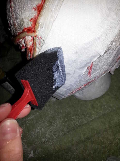 3. colocar la gasa y luego aplicar una gruesa capa de látex sobre la máscara entera.
