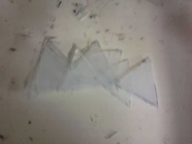 luego cortar cada triángulo con unas tijeras o una sierra pequeña de dremel