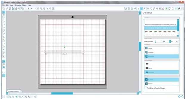 5. Abrir la ventana de estilo de línea en la esquina superior derecha y elija un estilo de la perforación. Me gusta elegir el tercero de la parte superior. Por perforación de esta línea, obtendrá un bonito borde incluso cuando dobla tu papel por la mitad para hacer una tarjeta.