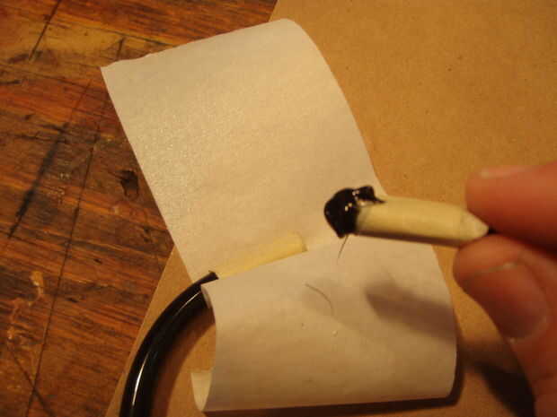 1. con cinta de enmascarar, envuelva ambos extremos del cable. Esto evita que la silicona que se utiliza para la fusión, entren en la superficie lisa de la junta tórica.