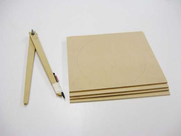 Entonces corté cuatro discos de 12 pulgadas de 1/4 trozo MDF que se utilizarán como apoyos para la parte superior e inferior brazo las estructuras de la base.