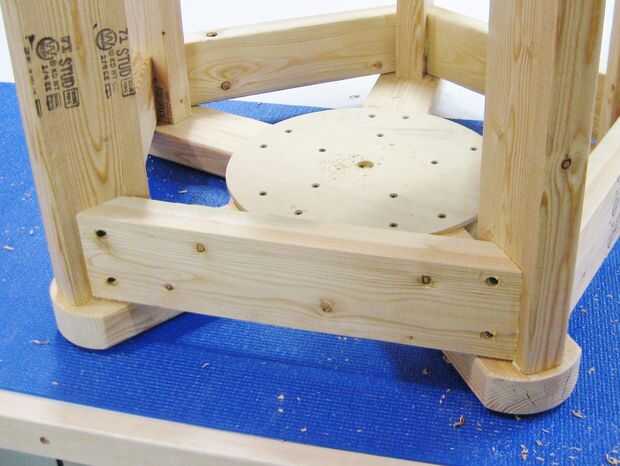 Nota: Por favor hacer caso omiso la altura de la base en este momento! Groseramente mal había medido la altura necesaria, y después de probarlo, tuve que quitar los tornillos, llamar aparte, recortar los soportes verticales y volver a fijarlo todo volver juntos. El procedimiento no cambió, por lo que decidí no volver a disparar las fotos para este paso.