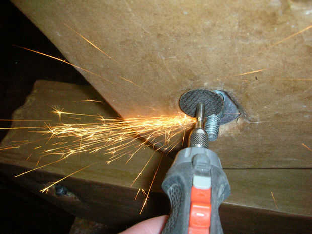 Luego recortar las varillas roscadas y apretar todos los tornillos de nuevo. Las dos varillas roscadas en el piso tienen tornillos en el interior, que sirven para el espacio de las piernas y mantener la cosa cuadrada y no torcida. Ajustar los pernos hasta el espacio entre las piernas.
