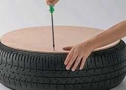 Limpie el borde y la madera y dejar secar totalmente. Utilice los cuatro orificios de taladro perforados lo suficientemente profundo para penetrar en el borde. Dependiendo del tornillo, utilice un destornillador para apretar el repetir en el otro lado de la cubierta del neumático.
