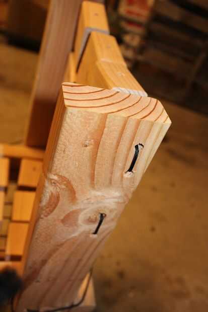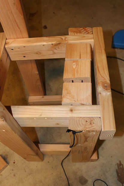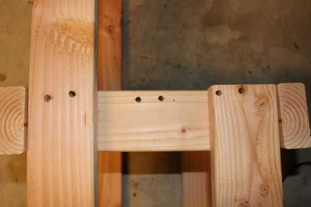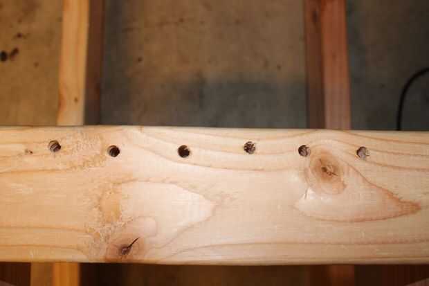 y hacia la parte superior (mirar la primera imagen). Para ello en los cuatro lados. Taladro 4 agujeros en cada una de las patas traseras hacia arriba (consulte la segunda a la última foto.