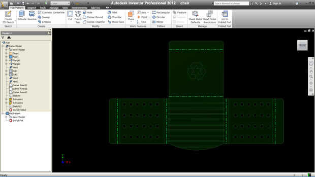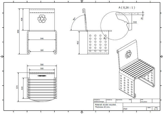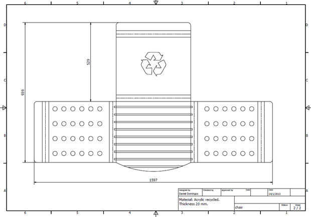 Después del corte se dobla la pieza de acrílico, siguiendo la dirección del dibujo técnico en las áreas a ser calentado y posteriormente doblado.