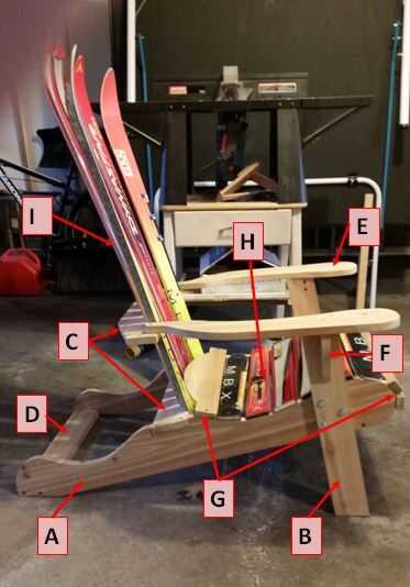 Las siguientes son las piezas que necesitarán para esta silla; parte nombres/letras puede verse en una foto de la silla montada:
