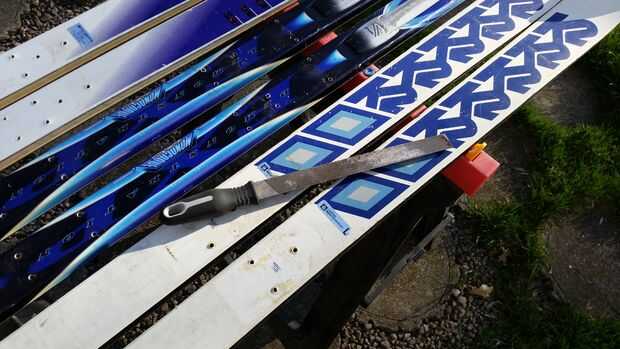 Los esquíes deben limpiarse para eliminar cualquier suciedad/suciedad, óxido suelto o virutas de metal que podrían quedar en ellos. Cualquier cocina ordinaria limpieza química debe trabajar para ello. Si eres un esquiador/snowboarder, el mismo químico se usaría para limpiar la base antes de un fresco cera caliente es lo que quieres utilizar. He utilizado Goo Gone.