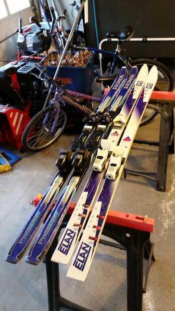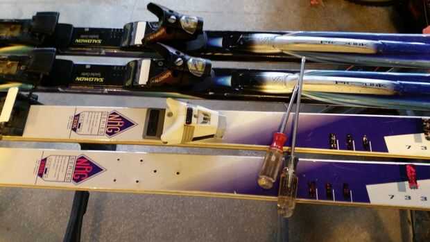 Para preparar los esquíes, primero debe quitar los enlaces. No sé nada sobre esquís (soy un snowboarder) por lo que para mí esto implicó muchos destornilladores, martillos grandes y un prybar. Tenga cuidado de no romper ningún esquís.