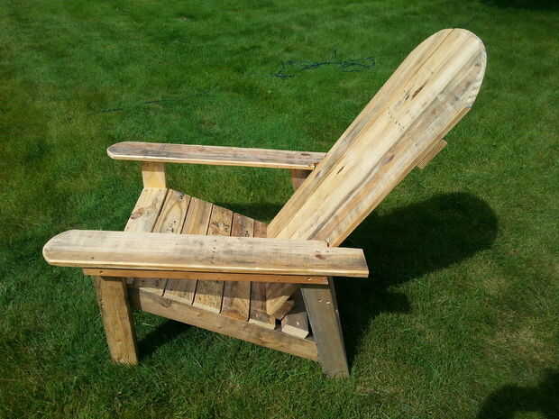 Hola,He hecho silla de Adirondack de tamaño de un niño de un palet usado. la altura asiento es de 16" y el ancho es de 18" la altura del soporte de brazo en la parte delantera de la silla es 18" y que irá hacia la parte posterior de la sill
