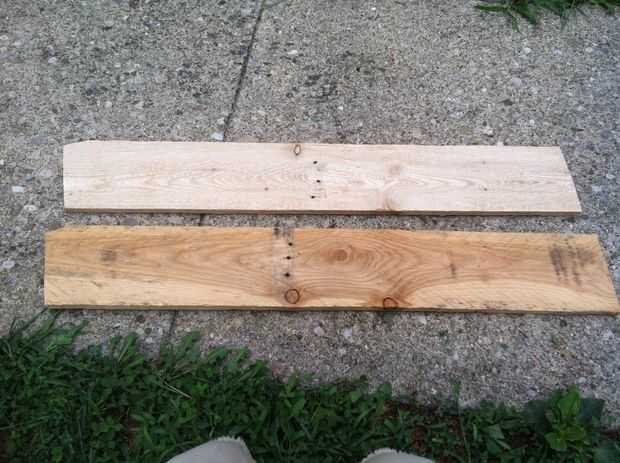 Por lo tanto, si eso es difícil de seguir, o si solo te quieren hacer un poco más fácil, utilice estas reglas. NO NECESITAS HACER TANTO! Corte 2 piezas de 1 "x 6" 33 3/4" de largo. Ahora vaya a una esquina, medida más 2" y 1/2". Haga una marca y de ese pequeño rincón (como lo es en la parte superior izquierda de la imagen). Esto no le dará las patas paralelas agradables una vez que está todo hecho, pero todavía van a quedar estable en el suelo. No es muy notable, sin embargo, ya que este corte es en la parte inferior trasera de la silla.