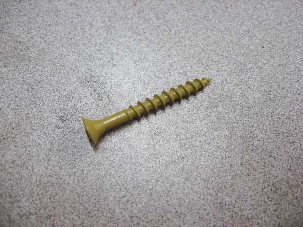 Usted necesita impermeabilizar pegamento al aire libre, así como tornillos de grado exterior. Usé 1 5/8" tornillos que había dejado del edificio que una valla y funcionó a la perfección.