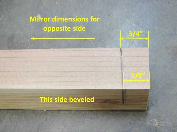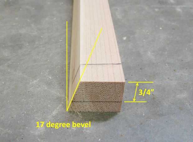 Tome uno de 1 1/8" piezas del último paso y corte un ángulo de 17 grados a lo largo de la longitud de uno de los lados más estrechos (en la posición que se muestra en la foto 1, esta pieza debe ser 1 1/2" de ancho y 1 1/8" de alto).