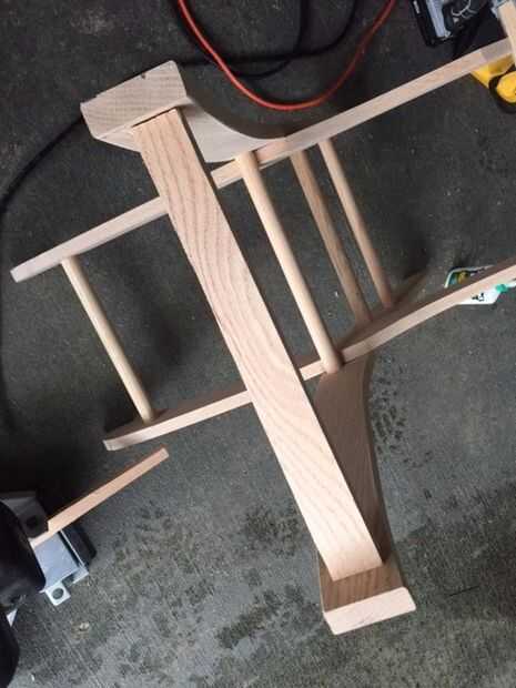 Sugerencia: Si usted tiene prisa para construir una silla, sólo cortar las piezas de la espalda y piernas, hacer la cola para arriba y luego empezar a cortar los listones del respaldo y asiento mientras el pegamento está secando en los subconjuntos.