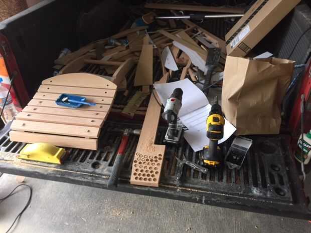 Es más que un poco irónico que tenía que hacer estas sillas con herramientas de la mano de la puerta trasera de mi carro de trabajo, teniendo en cuenta tengo vale la pena una semi profesional madera de la tienda de herramientas en almacenamiento de información, pero el resultado final valió la pena.