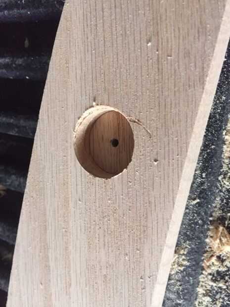 Quite los tornillos sosteniendo los pasadores en su lugar y cortar las espigas en el conjunto de la pierna en un solo lado. Tomar su broca forstener y cerdo hacia fuera el extremo de la espiga a la profundidad de 1/4". Ten cuidado porque la veta taladrará diferentemente que la cara. Seco Coloque el extremo de la espiga dentro del agujero, mediante un tornillo que dibuja para arriba firmemente. Compruebe el ajuste para ver si las piernas ahora en la parte posterior. Si cabe, luego pégala encima y estás en el negocio.