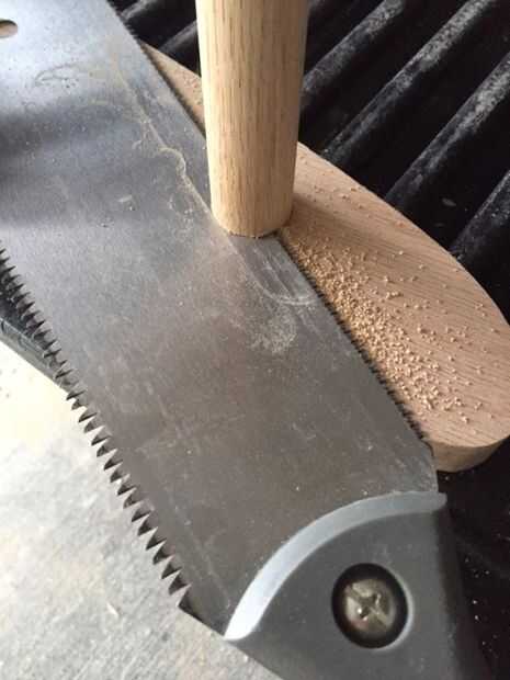 En la mía, ahora tenía demasiado mucho de un boquete, así que corte el otro extremo de la espiga, repitió el proceso y corte una nueva longitud de la espiga para que las patas encajen en la parte trasera perfectamente.