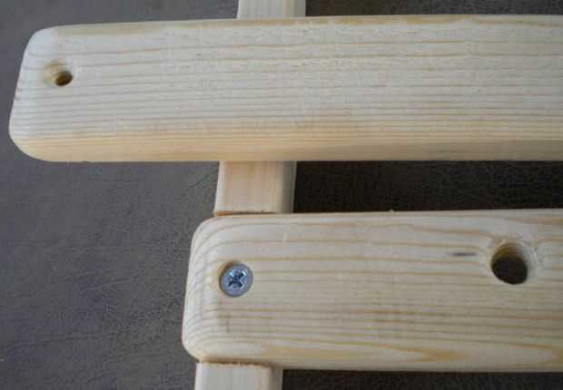 Marque los centros de los agujeros de tornillo 1/2" de los extremos de cada listón. Perforar los listones con el avellanado de #8. Avellane el Centro del listón y póngala a un lado, porque es la última pieza que se añade a la silla.